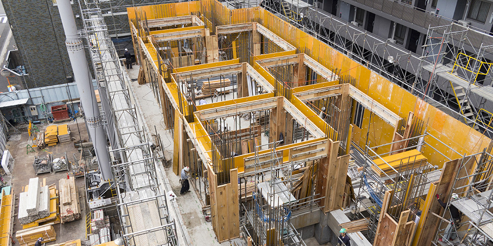 材料は上階で使用が可能なため、すべての階で作業が完了した後、脱型した材料をトラックに積み込み置き場に返します。